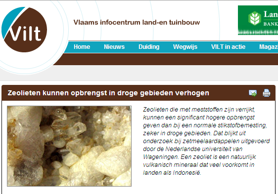 Het Vlaams Infocentrum Landbouw en Tuinbouw, Vilt, heeft een artikel gepubliceerd over gebruik van Zeoliet voor bemesting op arme aardappelgronden. Wilt u het volledige artikel lezen, klik dan op de volgende link.